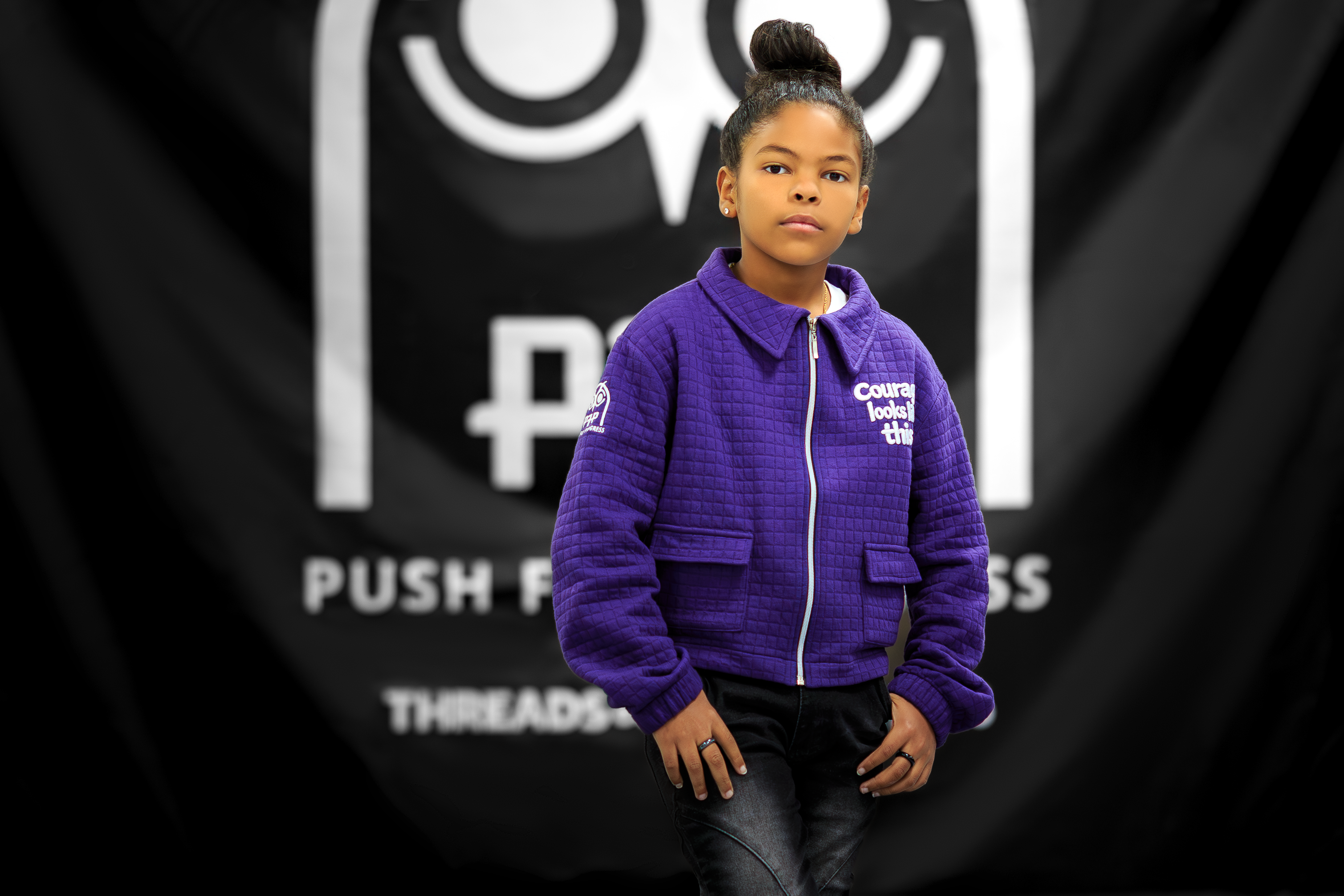 The Threads of Courage Quilted Jacket is a limited release piece from the Push For Progress runway collection. Designed in a rich royal purple with premium quilted texture and bold embroidery, this jacket blends elevated streetwear with the message behind the movement.