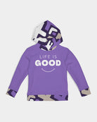 The Life Is Good Signature Hoodie is all about showing up with confidence and bringing the energy wherever the day goes. Designed in a bold purple with custom patterned accents in the hood, cuffs, and hem, this hoodie blends everyday comfort with standout streetwear style.